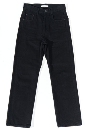 空気流で撚られた糸を使用しており、程よいラフさのある質感と洗い後のシボ感(凹凸)が特徴的なブラックデニムです。他のカラーと異なり表面ステッチは同色に、内側は遊び心のあるカラーステッチに。あえてヴィンテージ加工を施さず、ボタンやリベット等のパーツも全てマットなブラックで統一。どんなスタイルにもはまるモダンで大人な雰囲気に仕上げました。