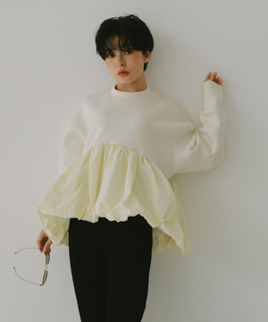 贅沢にペプラム部分の分量を出すことでカジュアルになりがちなスウェットトップスが一気に高級感があり華やかな印象になります。